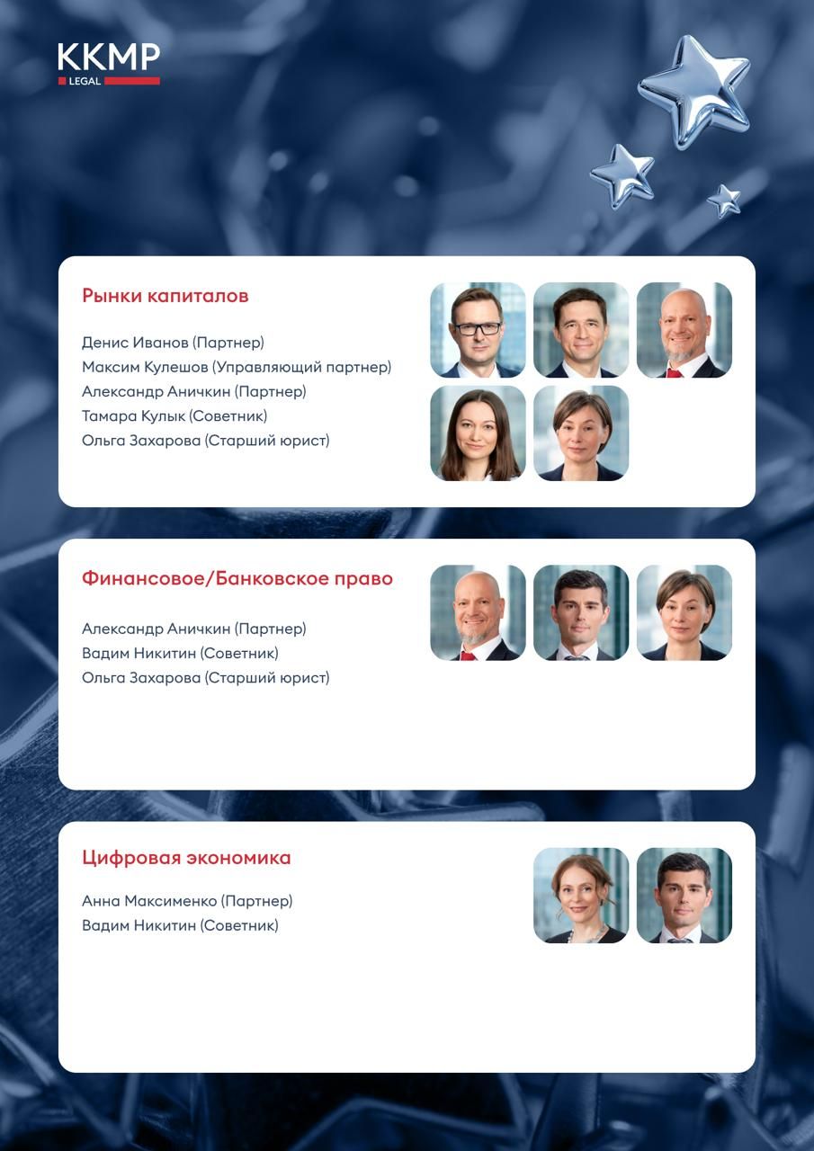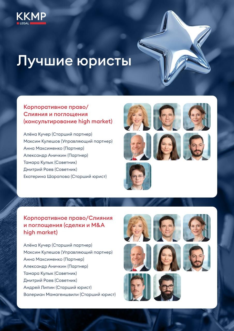 По итогам рейтинга 22 юриста ККМП (включая всех партнеров и советников фирмы) вошли в число лучших в 22 категориях.
